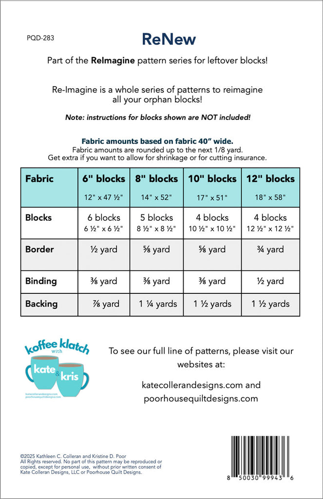 Have leftover quilt blocks? Use them in our ReNew table runner! Designed by Kate Colleran and Kris Poor, this runner pattern provides the clear steps to turn orphan 6”, 8”, 10” or 12” blocks into a fabulous table runner.